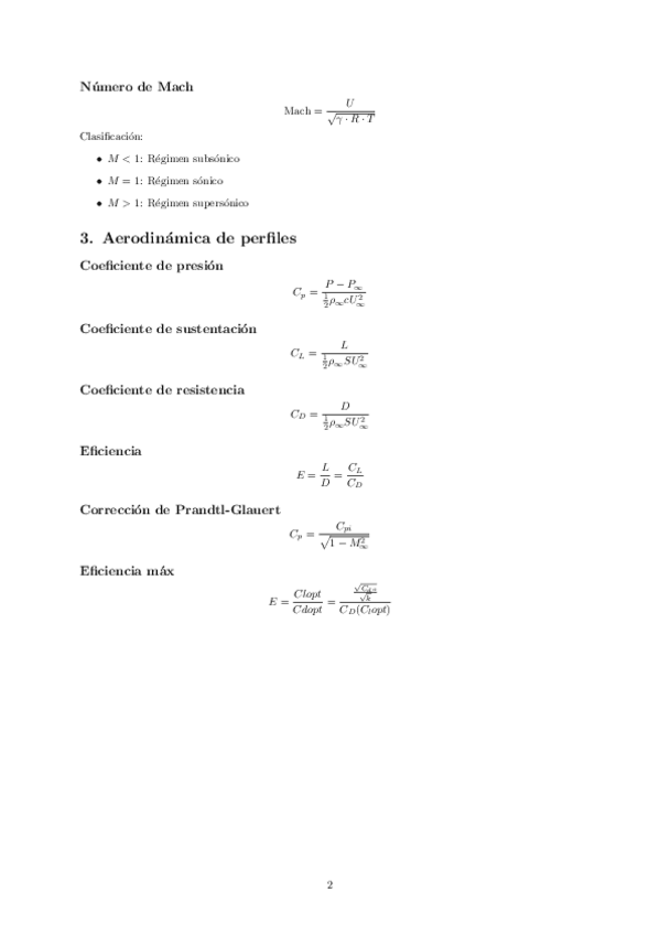 FORMULARIO PEI 2 AERODINAMICA