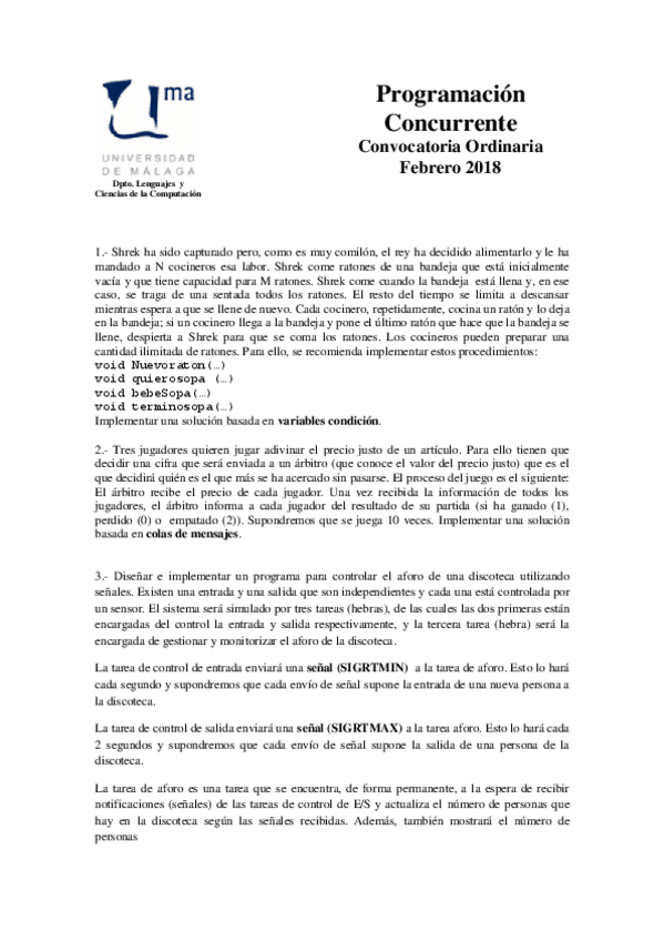 He publicado nuevos examenes de 3º Programacion Concurrente: Examenes