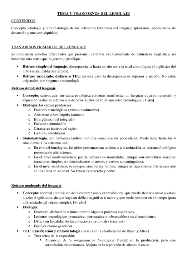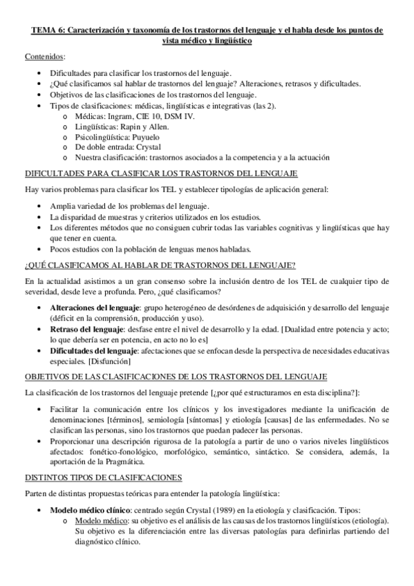 He publicado nuevos apuntes de 4º Lingüística Clínica: Trastornos del Lenguaje y del Habla: Temas