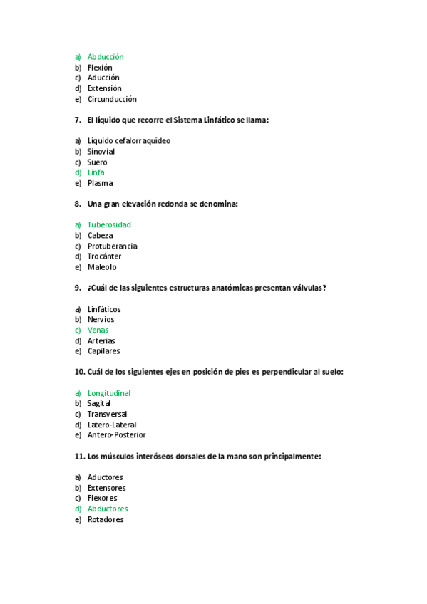 Preguntas exámenes Anatomía muy fiables con respuestas
