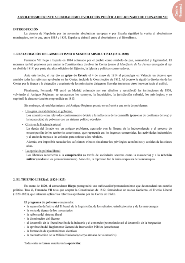 He publicado nuevos apuntes de Historia de España: Temas S.XIX