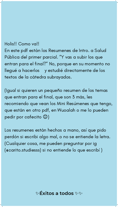 Bio: Holi! Soy Caro, estoy en 2do año de Nutrición en la UBA. Acá les dejo resúmenes de algunas de las materias que ya curse. Pueden descargarlos gratis por acá o me los pueden pedir por ig (@carito.studiesss) ♡
