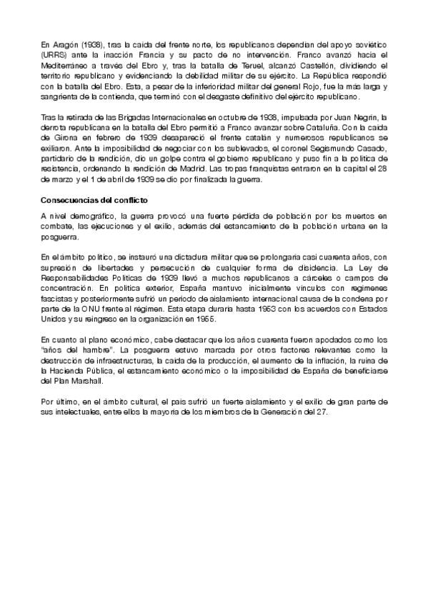 Tema 8 hist. de España - puntos a desarollar para la pau