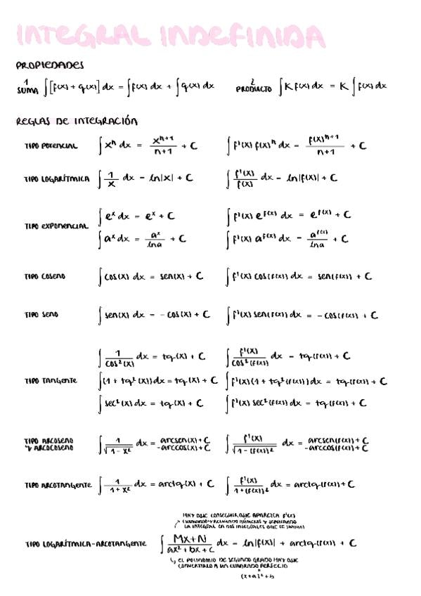 propiedades, reglas de integración, método de integración por partes y teorema de descomposición en fracciones simples