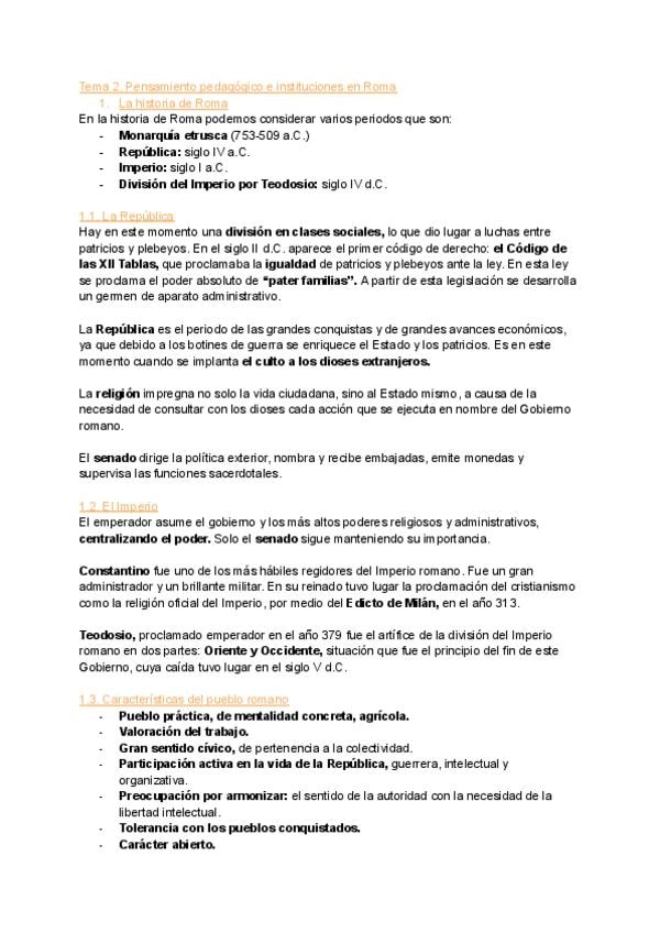 Apuntes del tema 2, Roma, completos. Tomados en clase y contrastados con el pdf de la profesora.