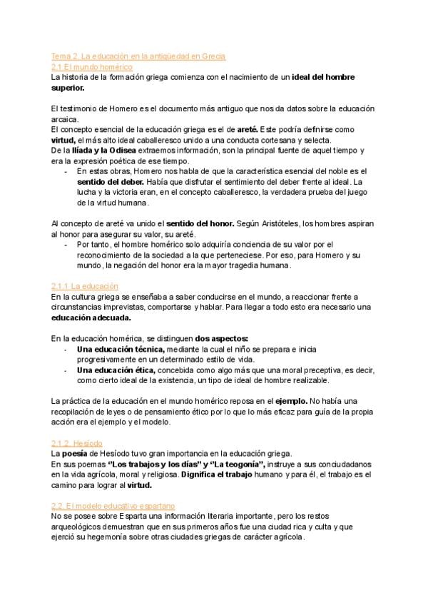 Apuntes del tema 2, Grecia, completos. Tomados en clase y completados con el pdf de la profesora.
