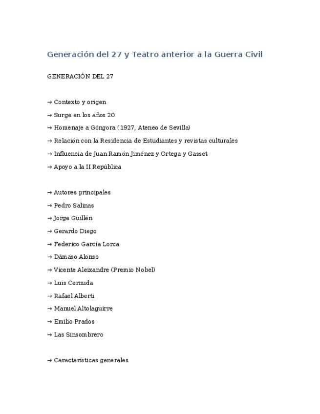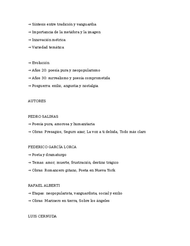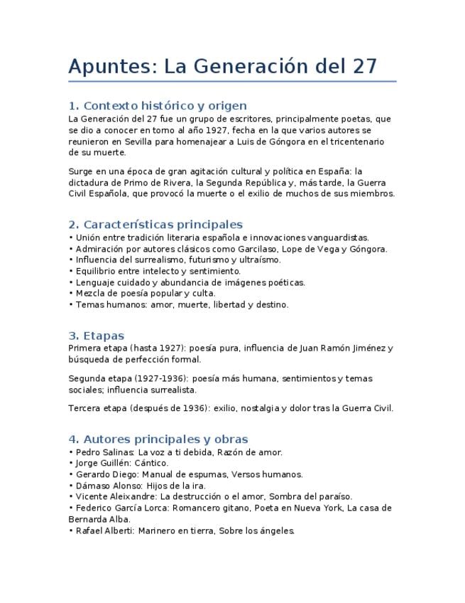 Apuntes muy esquemáticos de la Generació del 27, preparación PAU. 2º Bachillerato