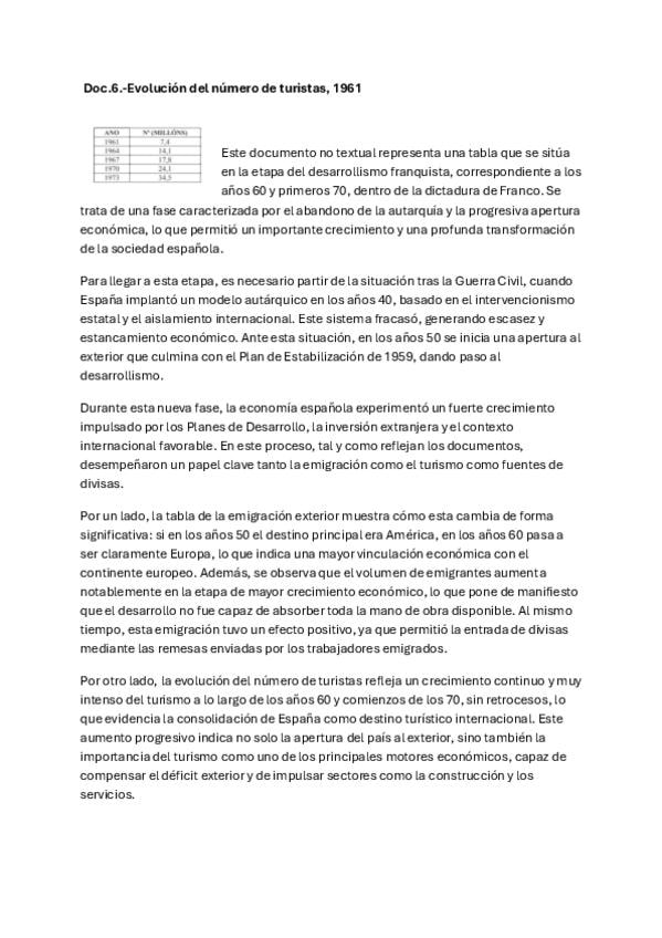 Comentario de texto de tipo no textual sobre la cantidad de turistas en la época de Franco. Preparación PAU 2º Bachillerato