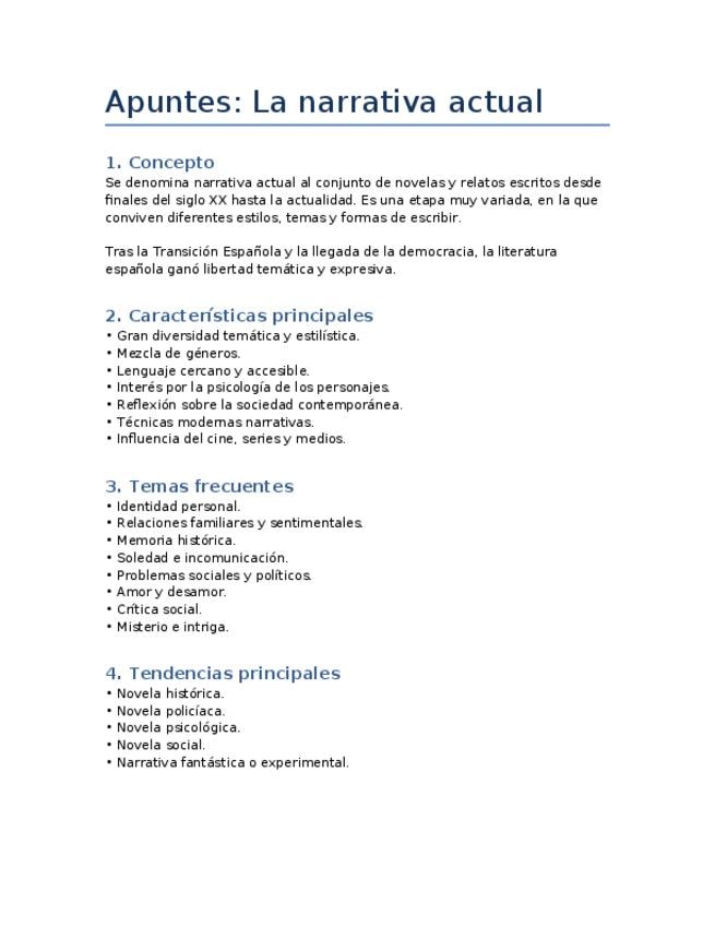 Apuntes muy resumidos de la narrativa actual. Preparación Pau 2026. 2º Bach