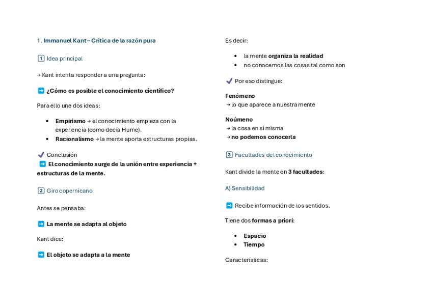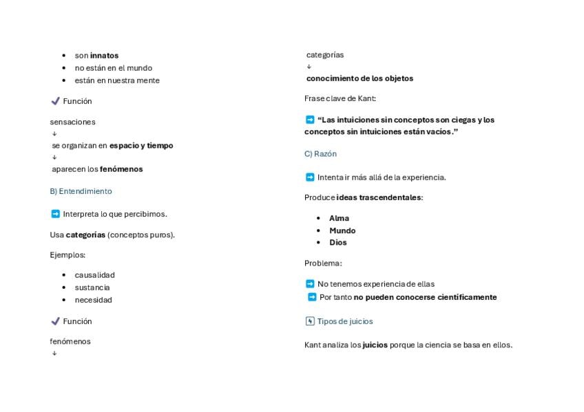 Apuntes muy resumidos de las principales ideas para la PAU de los filósofos Kant, Locke y Hume. Preparación Pau 2026