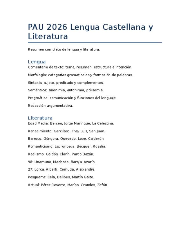 Resumen de todo lo que entra en la PAU 2026, desde literatura hasta gramática.