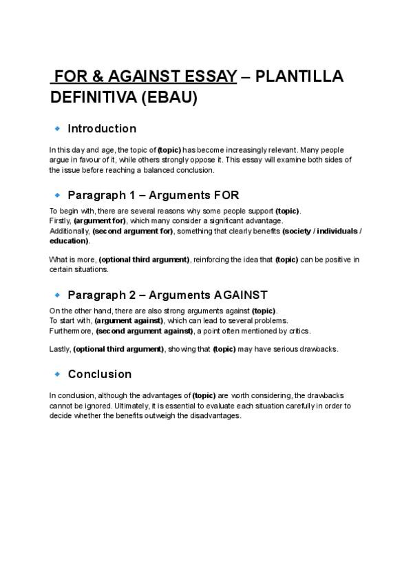 He publicado nuevos apuntes de 2º Inglés II: For-and-Against-Essay.pdf