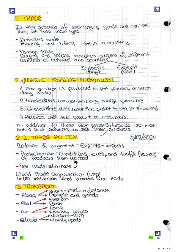 Apuntes hechos en clase en tercero de la ESO, sobre el sector terciario, están en inglés, lo siento si no se entienden bien, al ser copiados directamente de clase, están un poco sucios. Espero que los disfrutes ;)