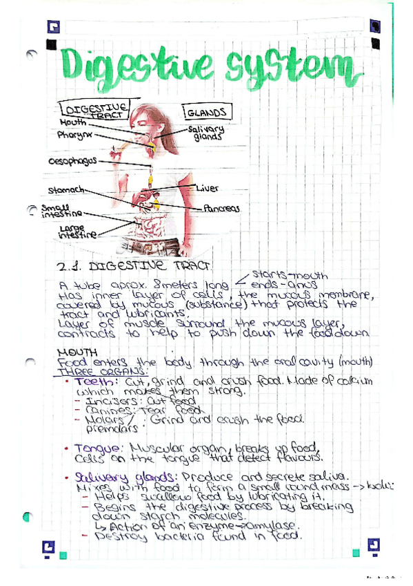 Apuntes hechos en clase en tercero de la ESO, sobre el sistema digestivo (digestive system), están en inglés. Si tienes alguna pregunta no dudes en escribirme. Espero que los disfrutes ;)