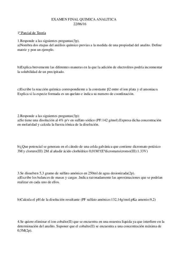 He publicado nuevos examenes de 1º Química Analítica: quimicaanaliticafinal1ºparcialteoria.doc