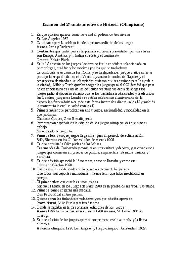 He publicado nuevos examenes de 2º Teoría e Historia de la Actividad Física y del Deporte: PREGUNTAS EXAMENES HISTORIA