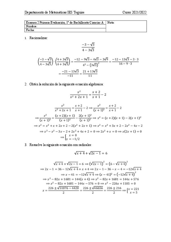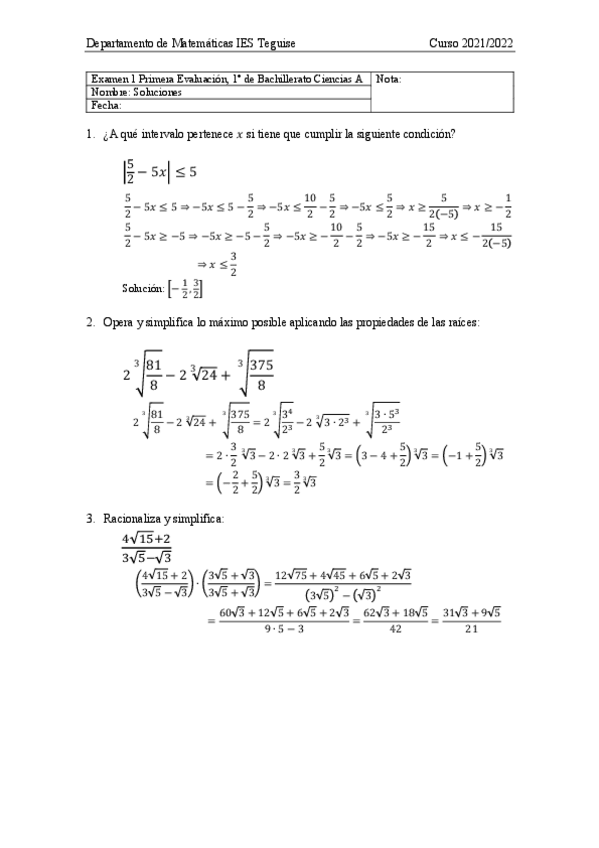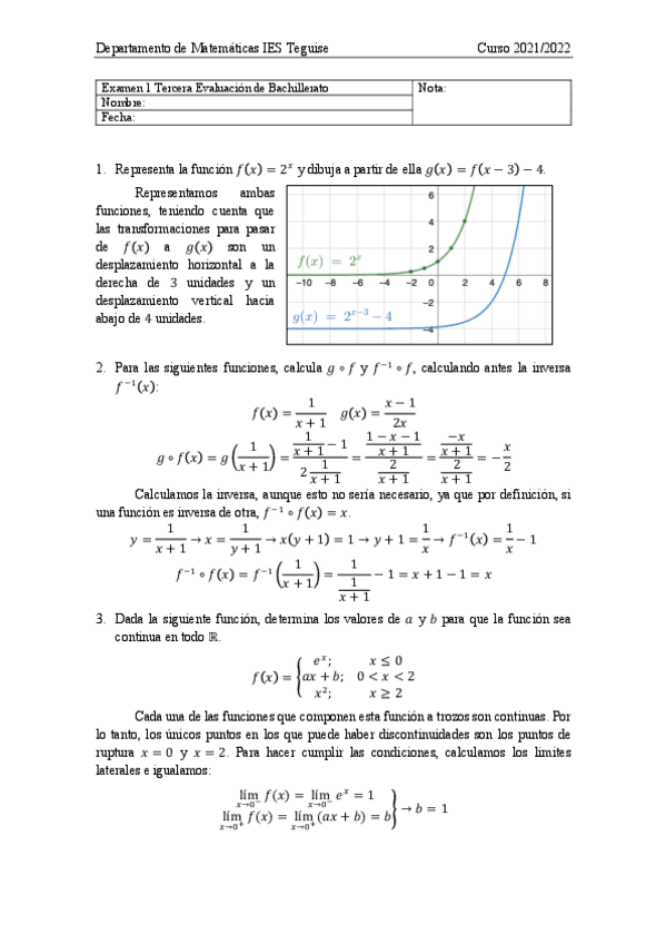 Examenes matemáticas 1ºBachilleato