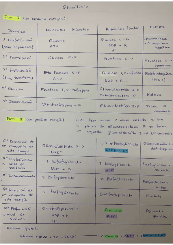 He publicado nuevos apuntes de 1º Bioquímica General Médica: Tabla Glucólisis