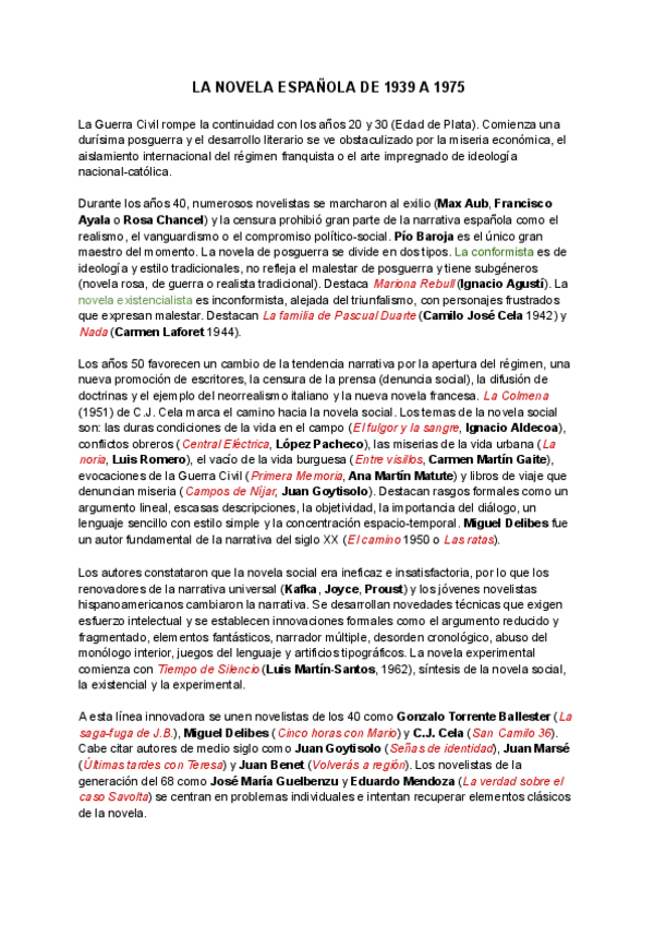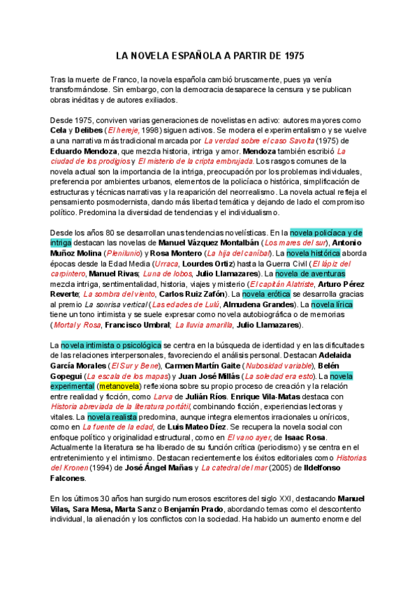 APUNTES DE 2º DE BACH DE LA NOVELA A PARTIR DE 1975, APUNTES DE MADRID DE ESTE ÚLTIMO AÑO 2025.