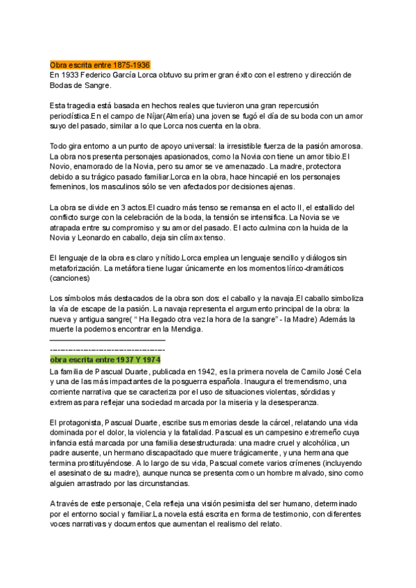 Resúmenes de tres lecturas obligatorias en bachillerato, las tres, de las distintas etapas. Para la pausólo será necesario aprenderse dos de esas tres lecturas.