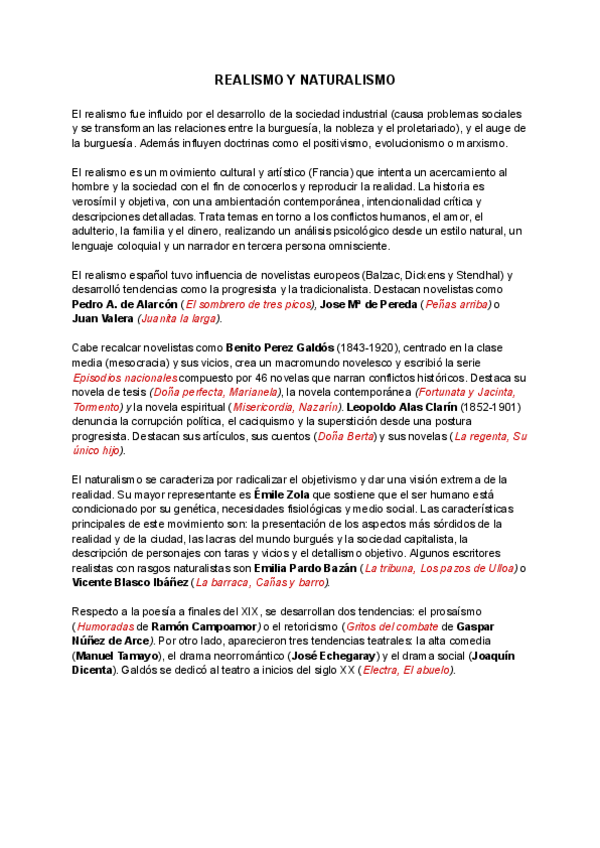 Resumen de literatura del primer tema(Realismo y Naturalismo) para la pau.