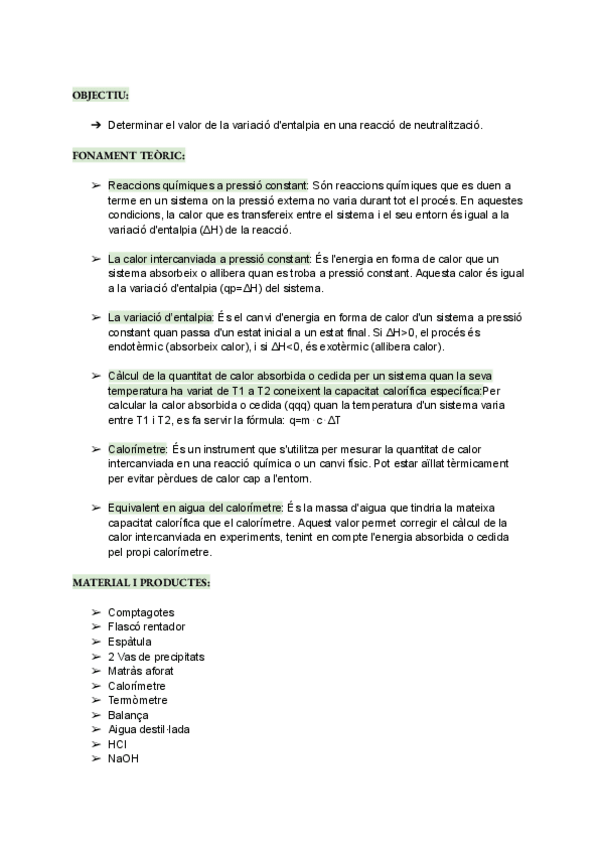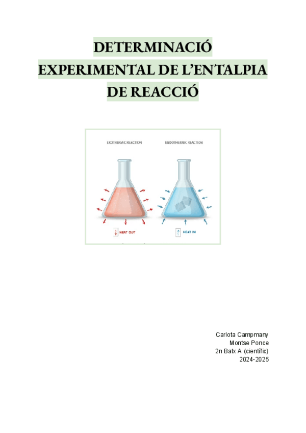 DETERMINACIÓ EXPERIMENTAL DE L’ENTALPIA DE REACCIÓ Informe
