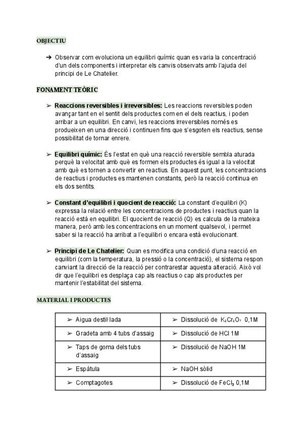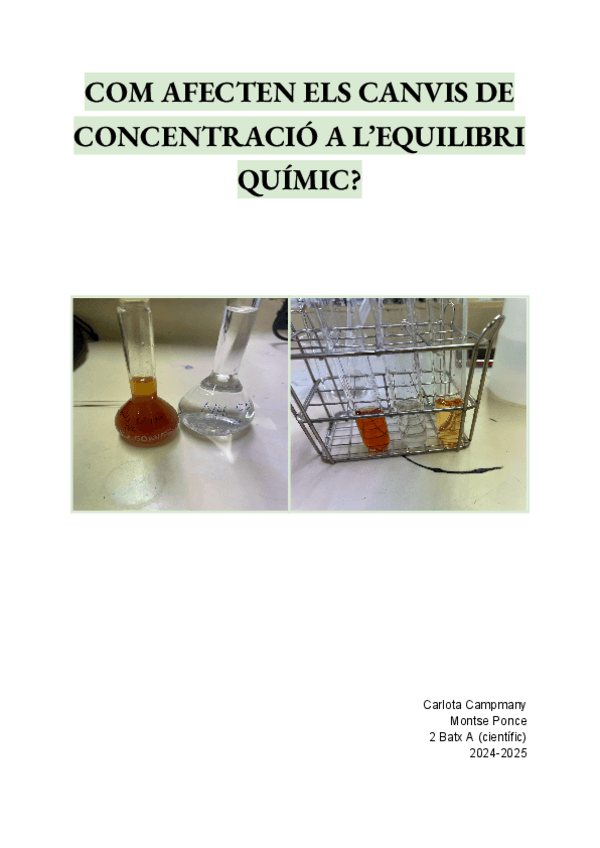 COM AFECTEN ELS CANVIS DE CONCENTRACIÓ A L’EQUILIBRI QUÍMIC? Informe