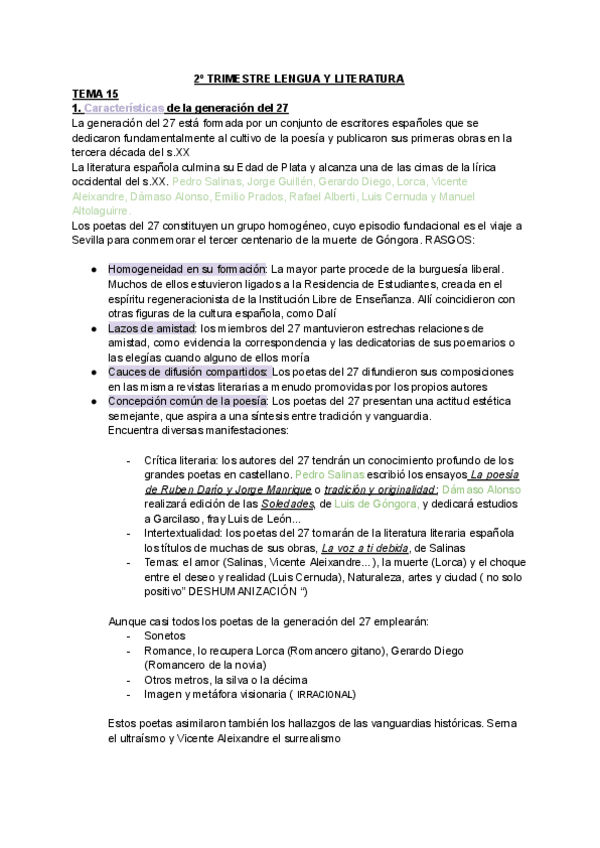 Características generación 27 / Trayectoria poética + tema 16 ( contexto / Miguel Hernández / poesía años 40 / poesía social / poesía medio siglo/ novísimos)