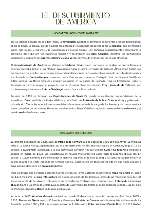 Esquema de historia de España Tema 7: EL descubrimiento de América
