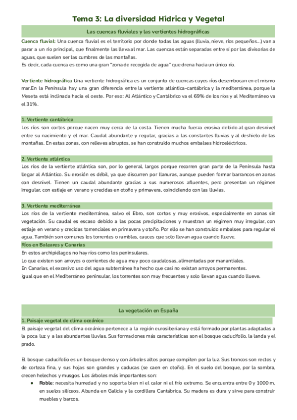 Apuntes Geografía tema 4: La diversidad hídrica y vegetal