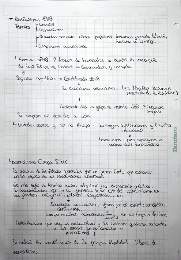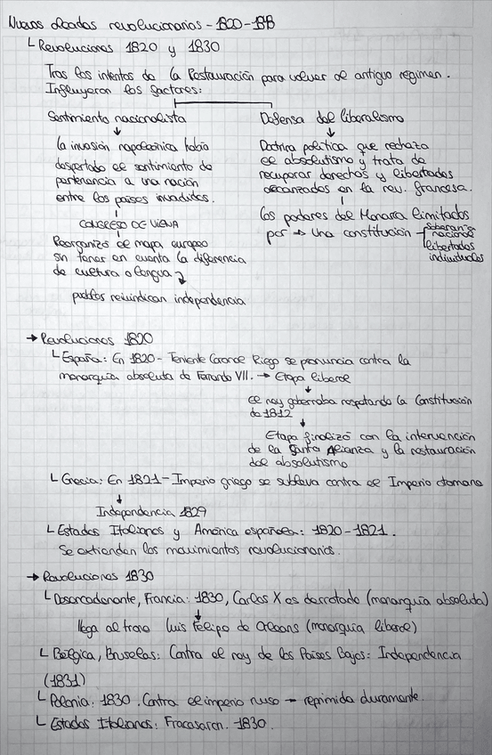 Apuntes y resúmenes ESO Historia. Revoluciones 1820, 1830, 1848 S.XIX. Nacionalismo y procesos de unificación.