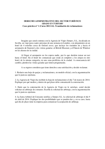 He publicado nuevos practicas de 3º Derecho Administrativo del Sector Turistico: Caso práctico 1 Reclamaciones 2014.pdf