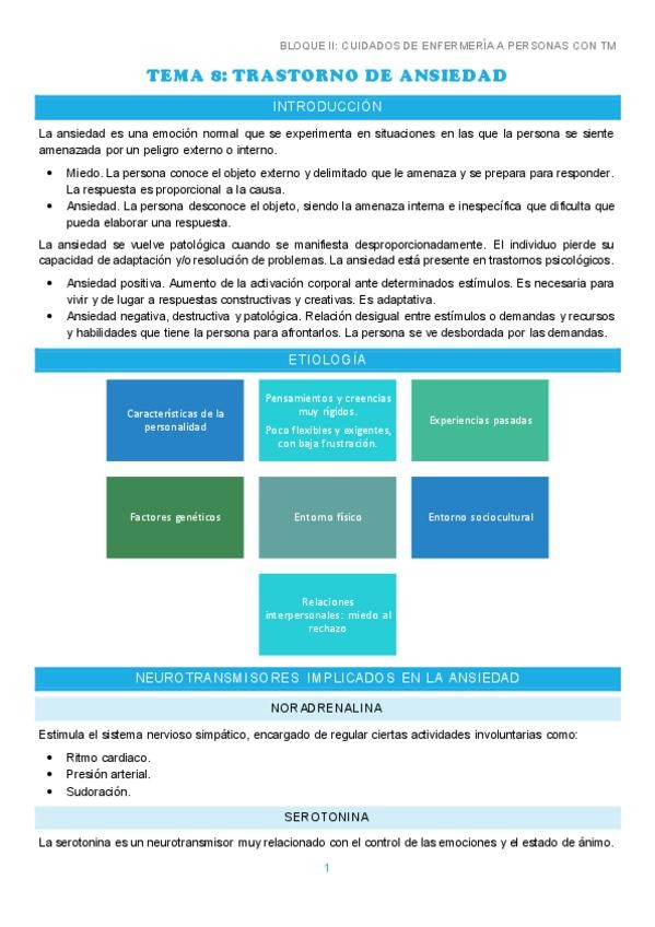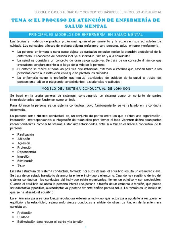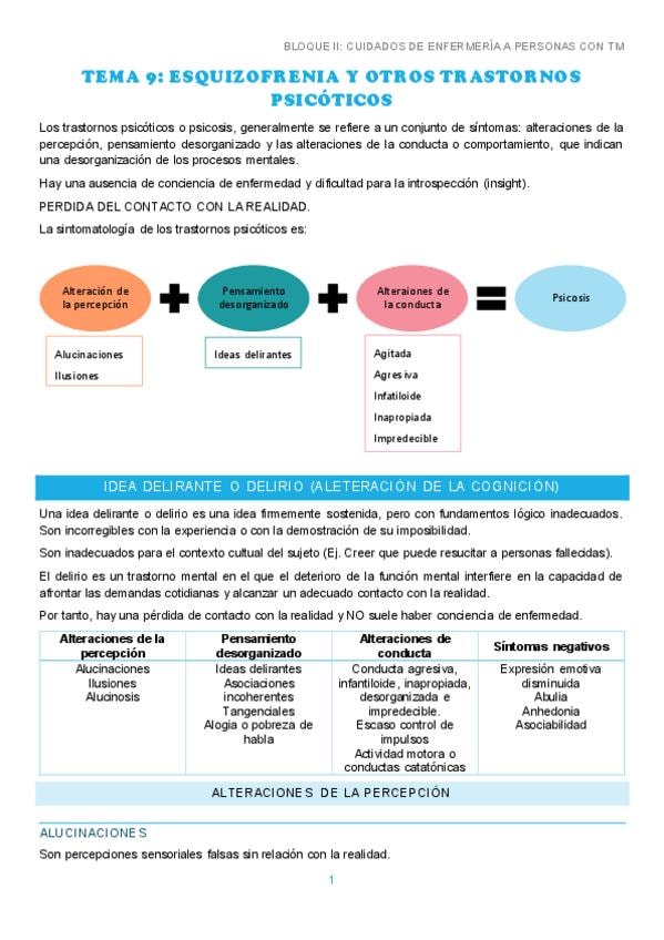 BLOQUE II: CUIDADOS DE ENFERMERIA A PERSONAS CON TRASTORNO MENTAL