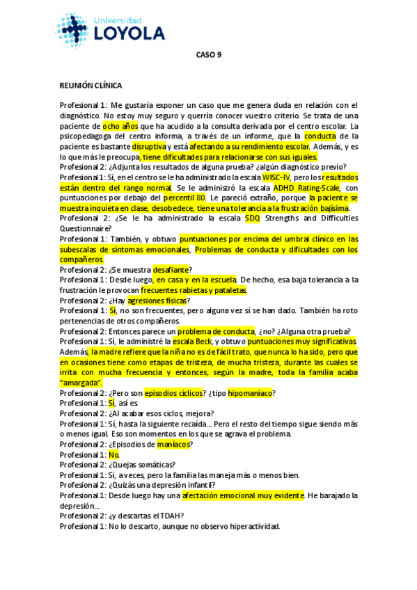 Casos clínicos Psicopatología