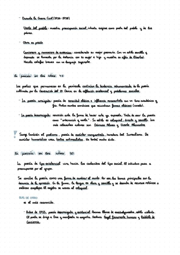 Poesía española en las tres décadas posteriores a la guerra civil, Miguel Hernández, Blas de Otero, Jaime Gil de Biedma y Gloria Fuertes-2bachillerato.