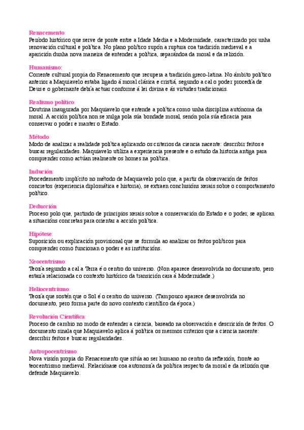 Glosario posibles términos a definir de la filosofía del Renacimiento y Maquiavelo