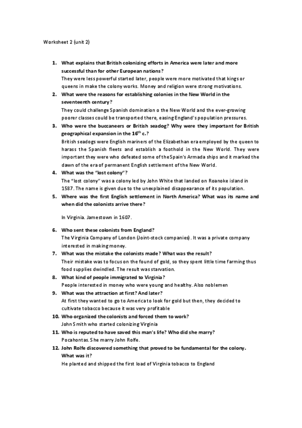 He publicado nuevos ejercicios de 2º Historia y Civilización Norteamericana: Worksheets