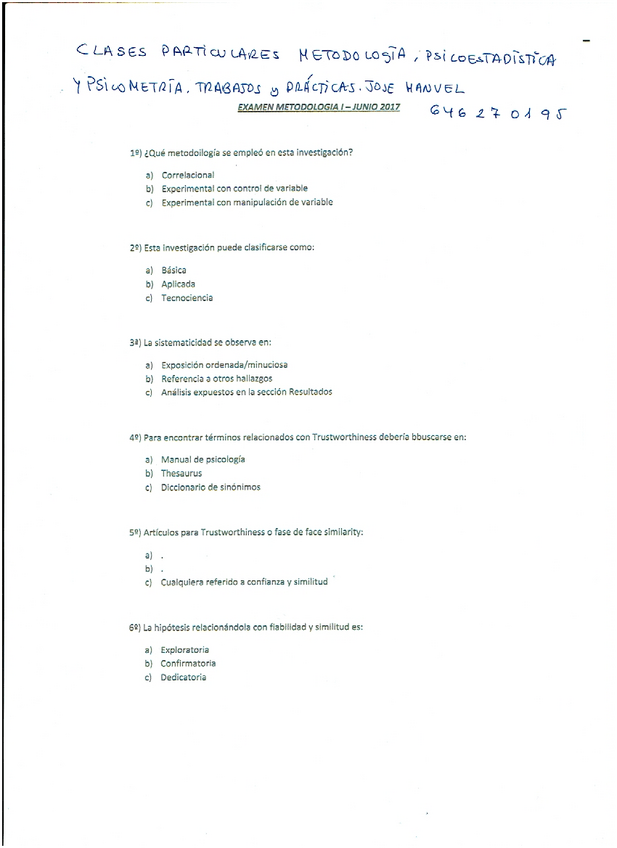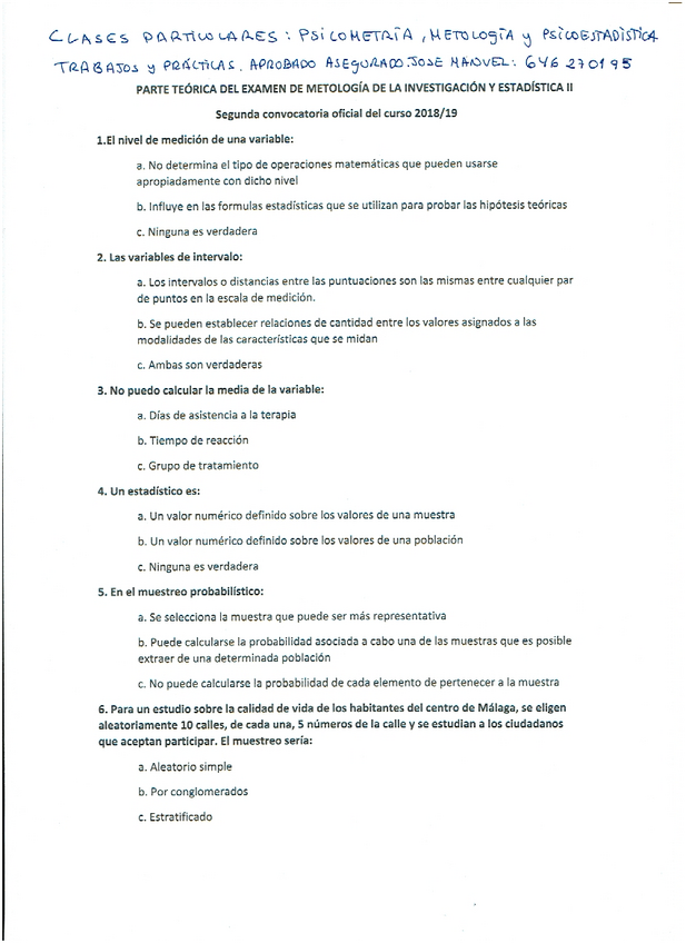He publicado nuevos examenes de 1º Metodologia de la Investigacion y Estadistica II: examen y clases particulares