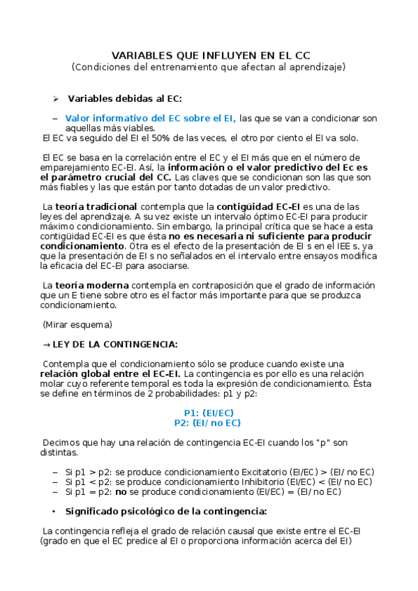 He publicado nuevos apuntes de 1º Psicología del Aprendizaje: Tema4. Variables que influyen en el condicionamiento.odt