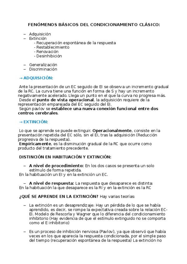 He publicado nuevos apuntes de 1º Psicología del Aprendizaje: Principios básicos del condicionamiento clásico.odt