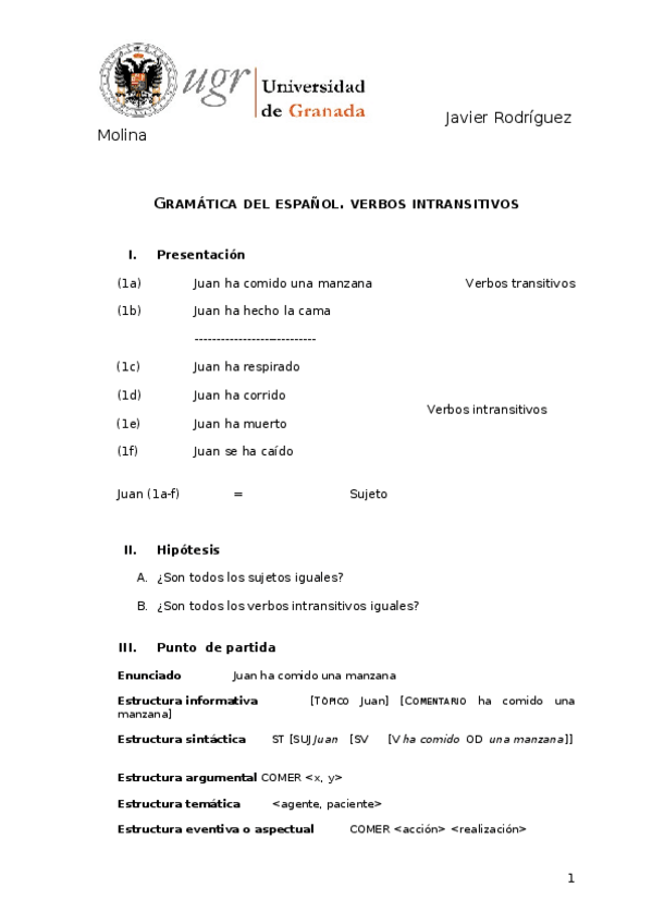 He publicado nuevos apuntes de 1º GRAMÁTICA DEL ESPAÑOL I: MORFOLOGÍA: Verbos intransitivos (2).docx