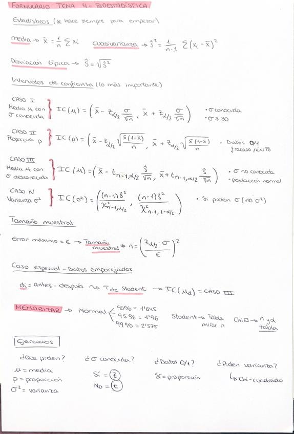 Apuntes Teoría Tema 4 - Bioestadística
