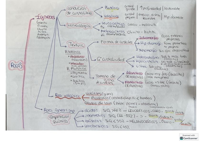 Anotaciones de los tipos de rocas de la práctica de visu de minerales 2