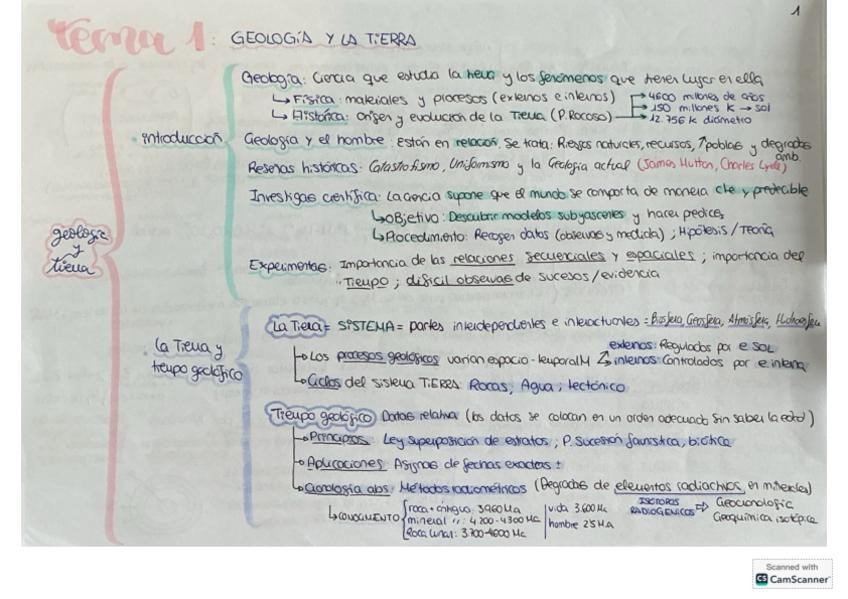 Apuntes de todo el temario de geología complementado con anotaciones tomadas en clase a modo de esquema