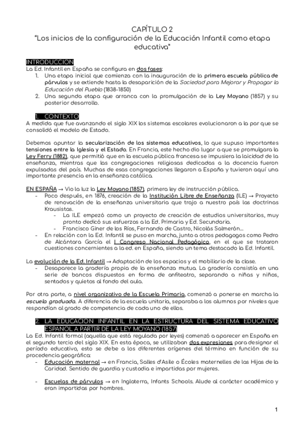 Resumen del primer Capítulo de La Escuela de Ed. Infantil en España.