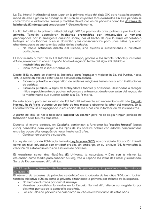 Resumen del Capítulo 2 de La Escuela de Ed. Infantil en España