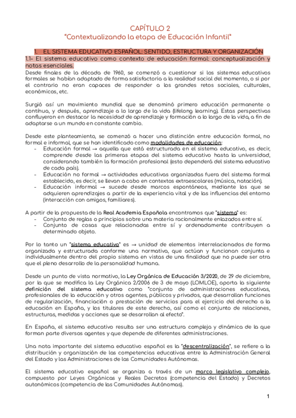 Esquema resumen Capítulo 1 de Escuela en EI en España