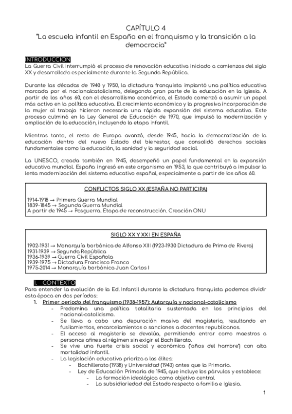 Resumen Capítulo 4 de Escuela de Educación Infantil en España