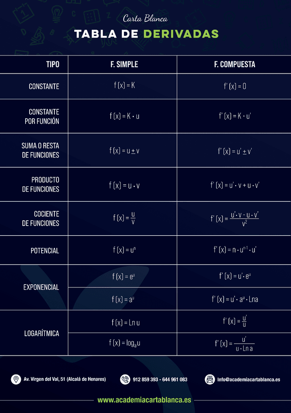 He publicado nuevos apuntes de 1º Álgebra Lineal: Tabla de derivadas e integrales