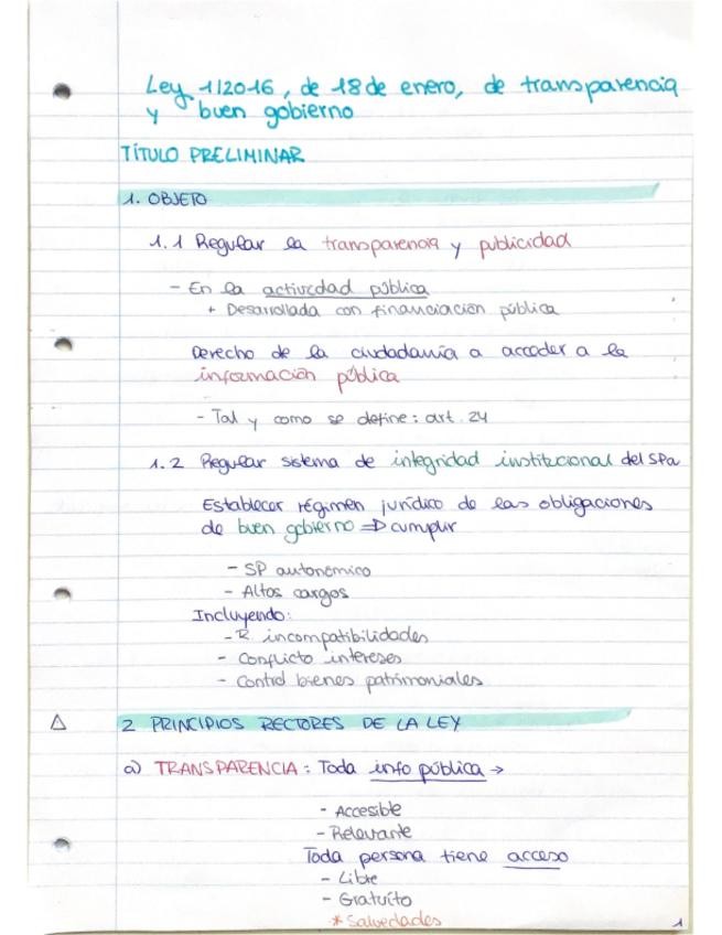 Apuntes sobre el contenido completo de c1 xunta de galicia sobre la ley 1/2016 de transparencia y buen gobierno